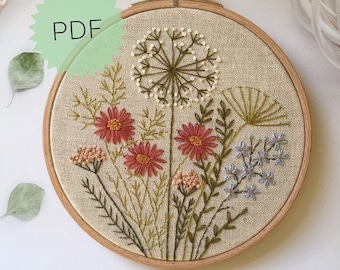 Wildflowers Embroidery Pattern Video Tutorial Beginner Etsy