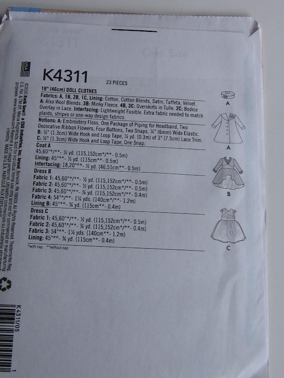 18 Doll Clothes Pattern Kwik Sew K4311 Etsy